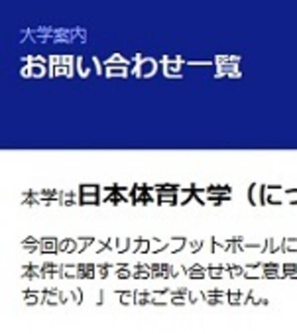 本学は日体大であり 日大ではございません 日大アメフト部の騒動が日体大に飛び火 大学サイトにお知らせ掲載 18年5月24日 エキサイトニュース